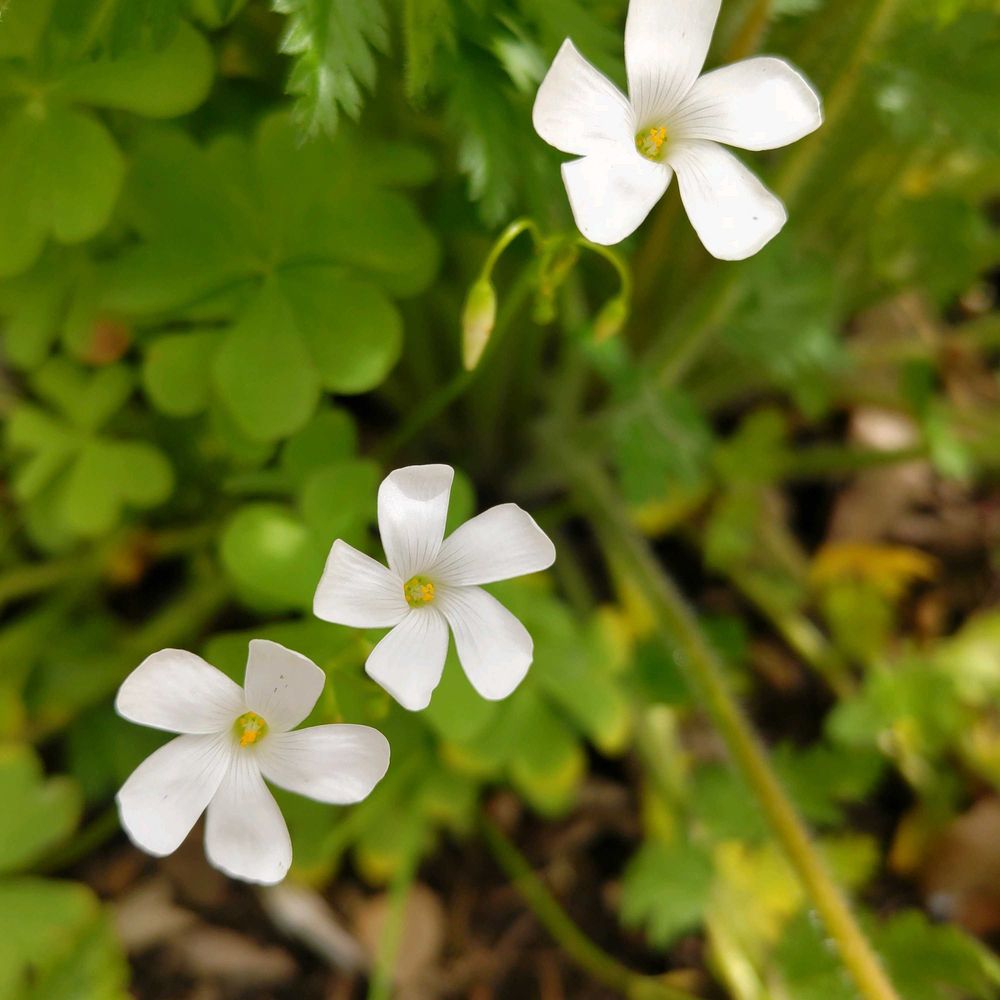 ①昨年友達の庭から頂きましたが、🔍️したら白花イモカタバミの様です🤍