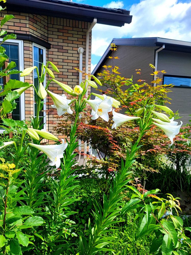 今日は雨が降ったりやんだりしていますが一応晴れる時もあり、昨日のテッポウユリ ホワイトヘブンもキラキラしてます。