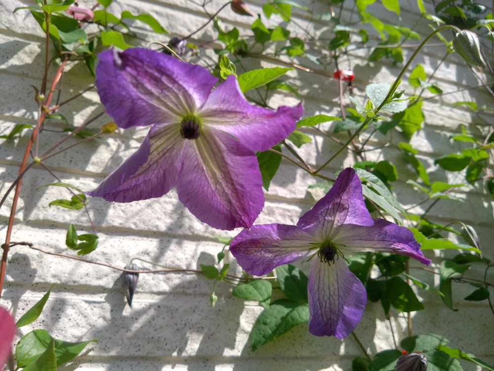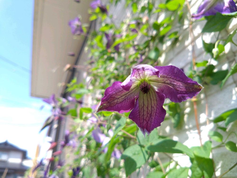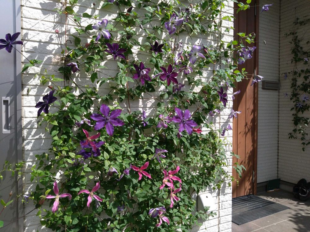 玄関前のクレマチスは、下半分くらいが見頃を迎えようとしています💕