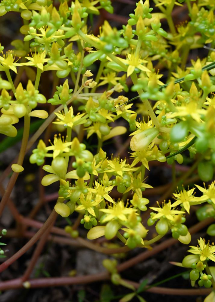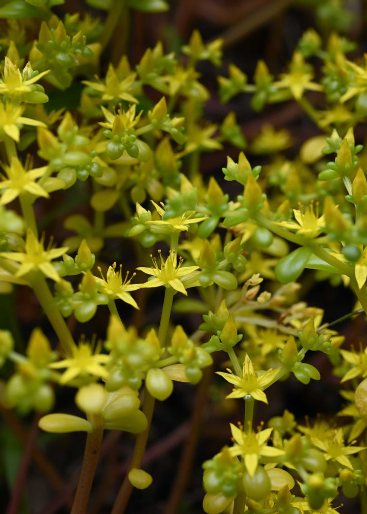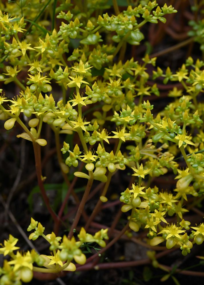 むしろ草全体の姿としては立ち上がる花茎が目立ち、キリンソウの型とマンネングサの型の中間のようにも見える。