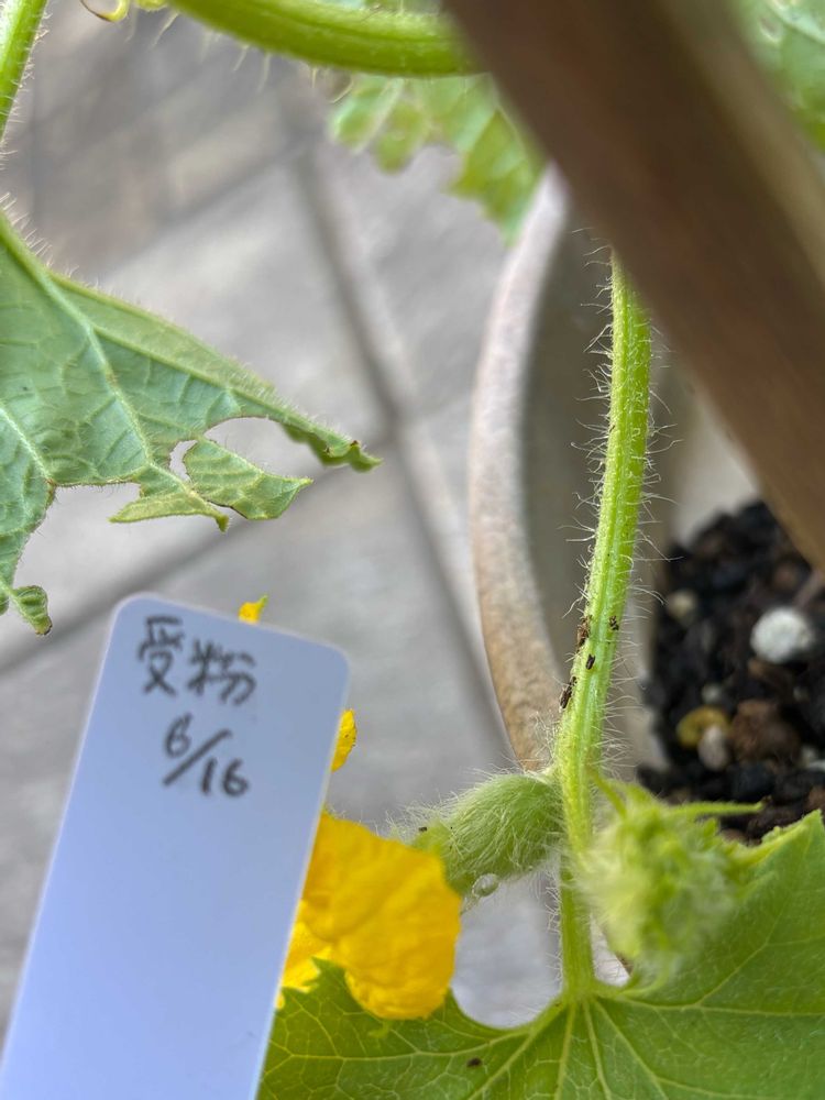 ちゃん、おはよ🌞メロンなってるというよりも、雌花の根元にすぎないの😅