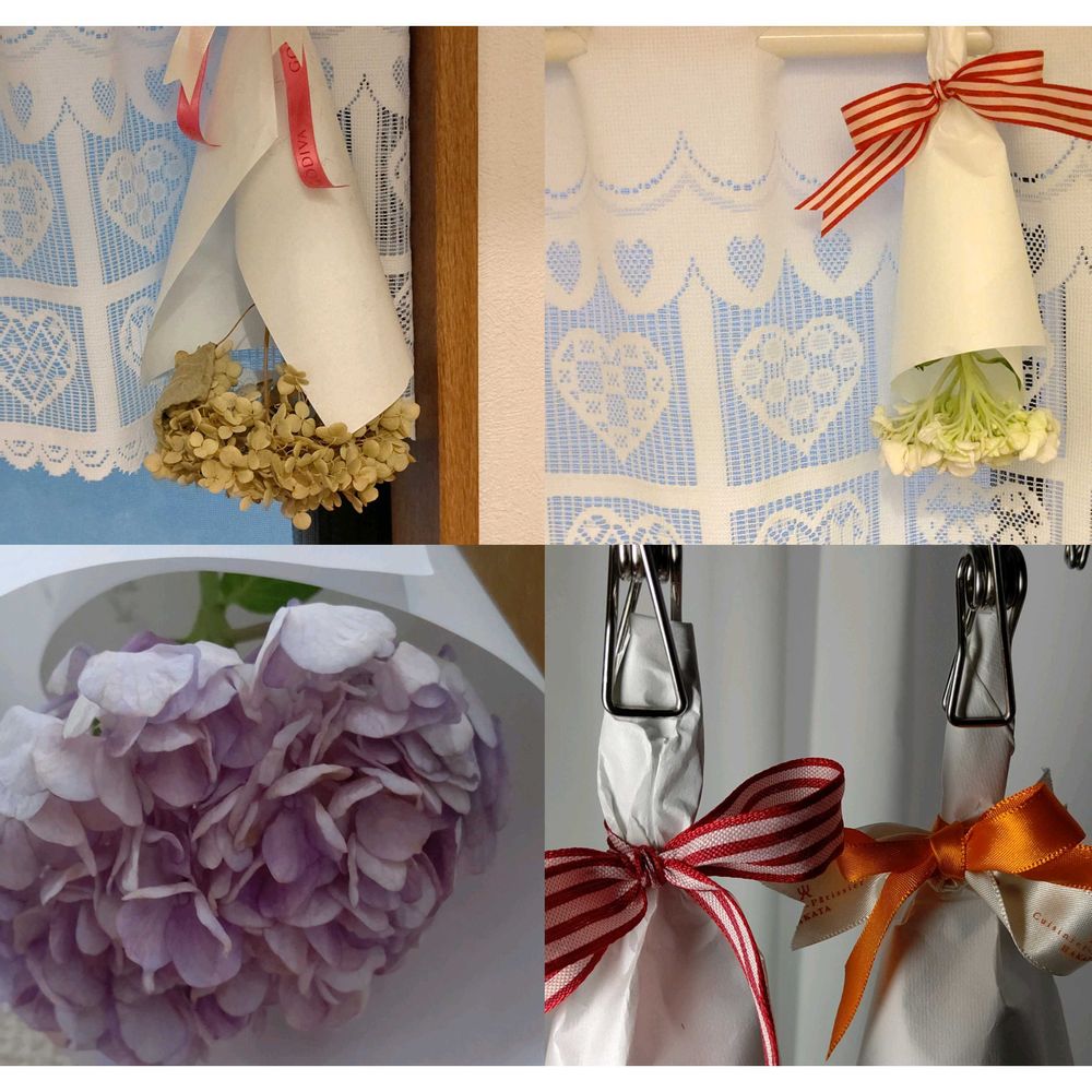 綺麗に咲いてから数日後、緑色にお花が変色してからカットして吊るすと小さくしぼまないで可愛いですよ😊