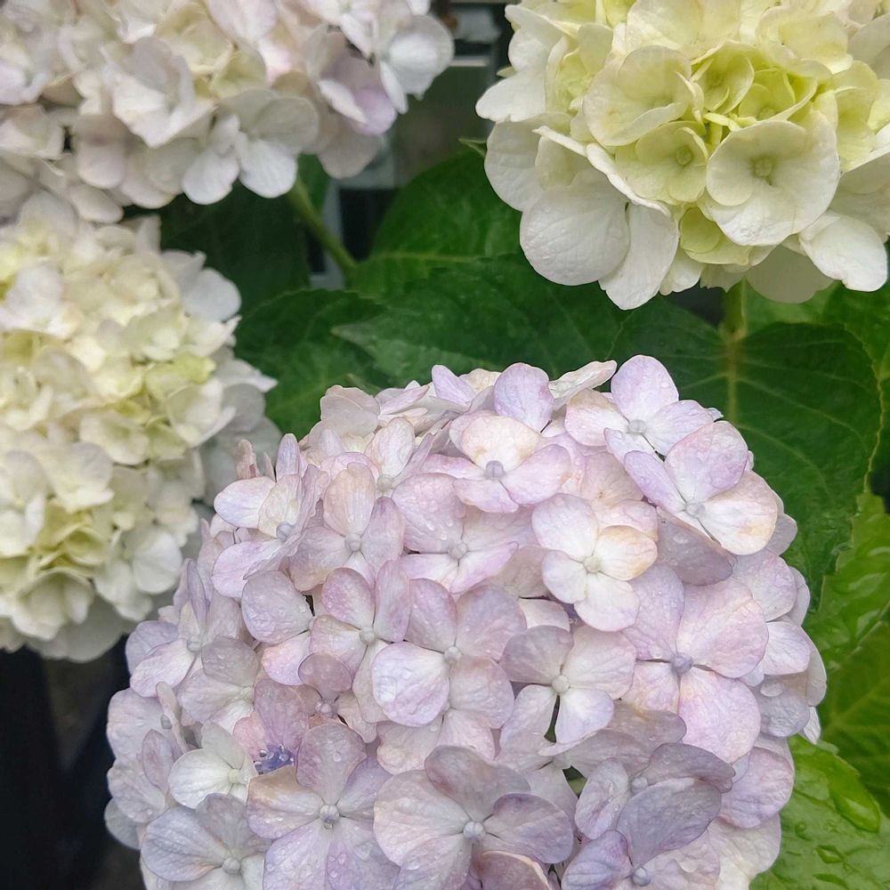 左上のアナベルで作った(一昨年)おまじないから左上の今朝作ったアジサイへ交換💖