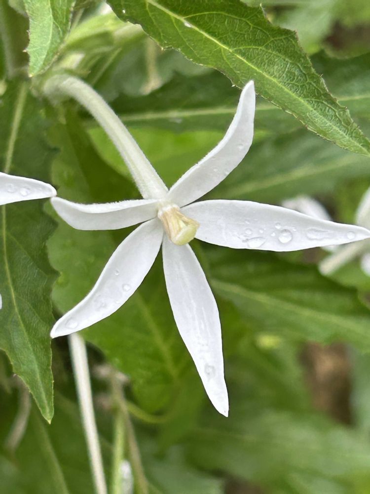 清楚な白い五つの花弁が、カタブイの雨を湛えて緑陰に佇んでいました🌟💓