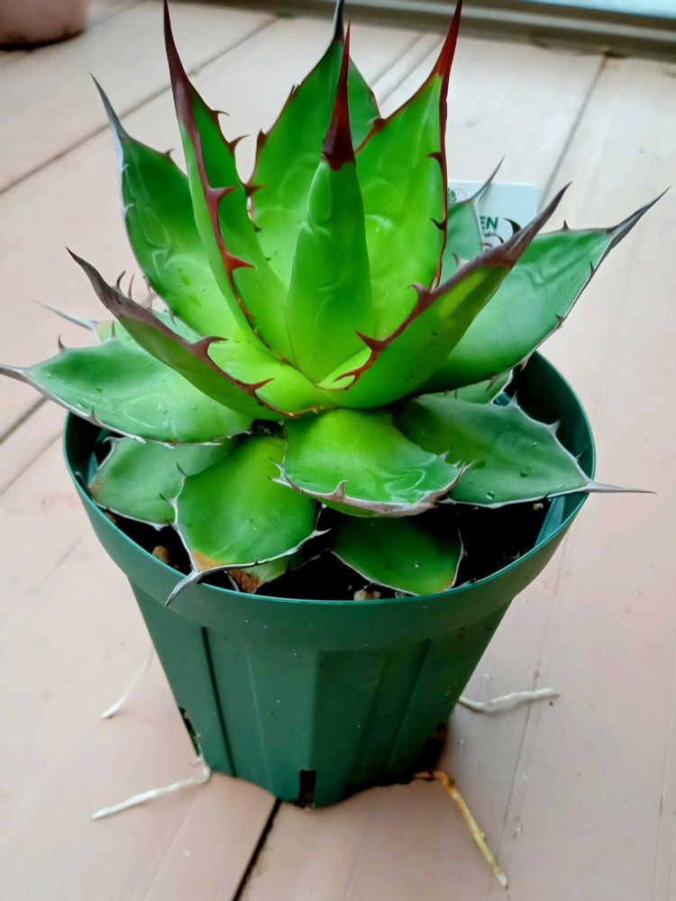 二枚目はアガベホリダちゃん🤩根っこが出てきて歩いてるみたい😂植え替えろ〜〜〜って言うてるのかも😅二番茶終わるまで待ってて👍あなたを植え替えるときは気合いがいるのだから🤣🌀