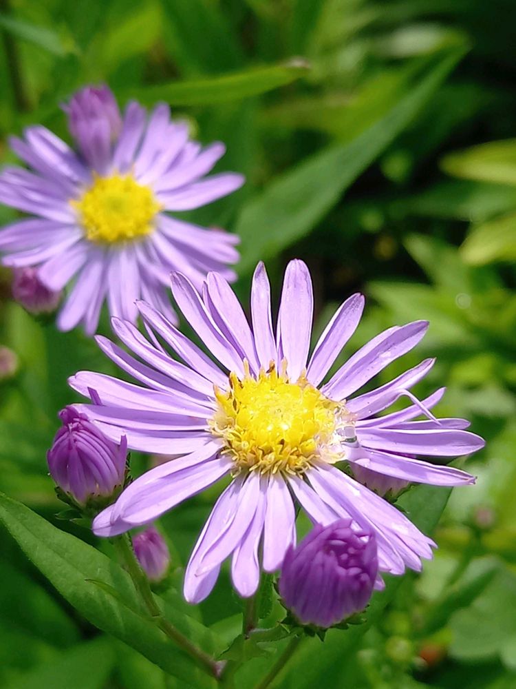 アスターも同じ色で、黄色い蕊が、いいですね~💛