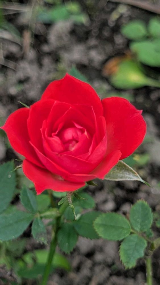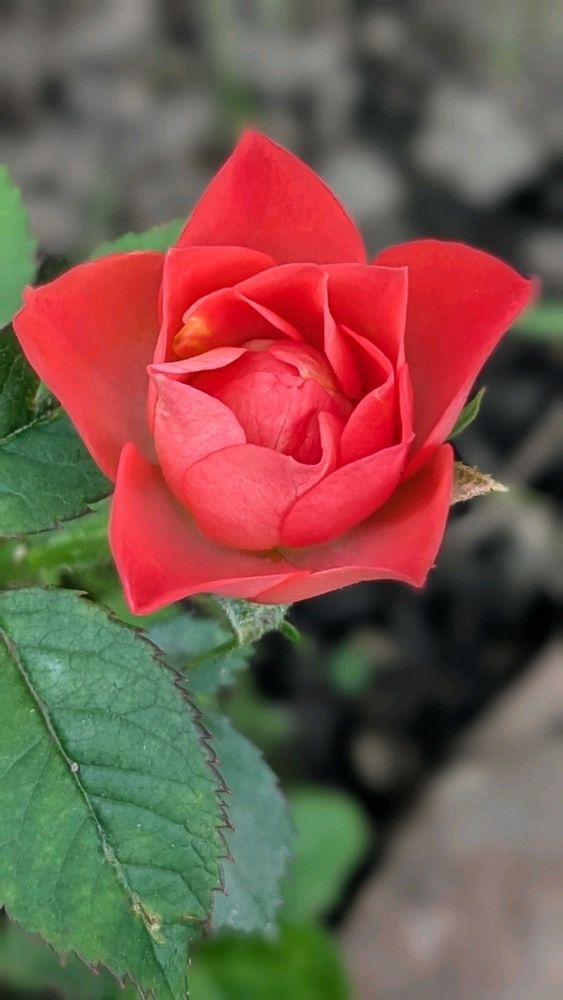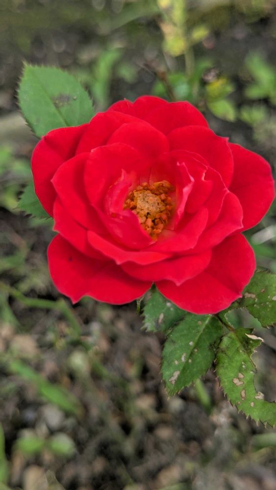 とっても鮮やかな朱色のミニバラが咲き始めました❤️