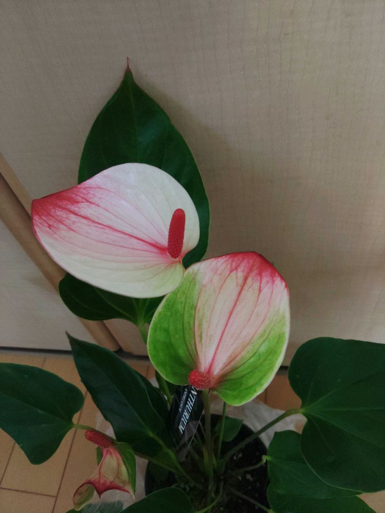 昨日、お気に入りの園芸店へ行くと、このアンスリウムに出逢いました💚💗❤️🤍❤️💗💚