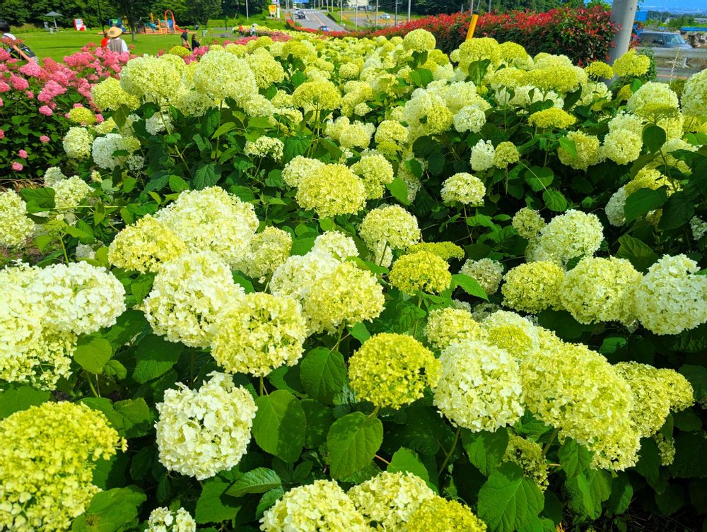 昨日は午後に天気が回復したので、紫陽花を見てきました。品種によってはこれから開花の状態でしたが、アナベルは見頃でした。梅雨って感じがしますね!