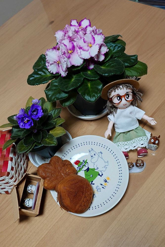 しーちゃんもムーミンたちもセントポーリア🩷💙のお花見( ´艸`)
