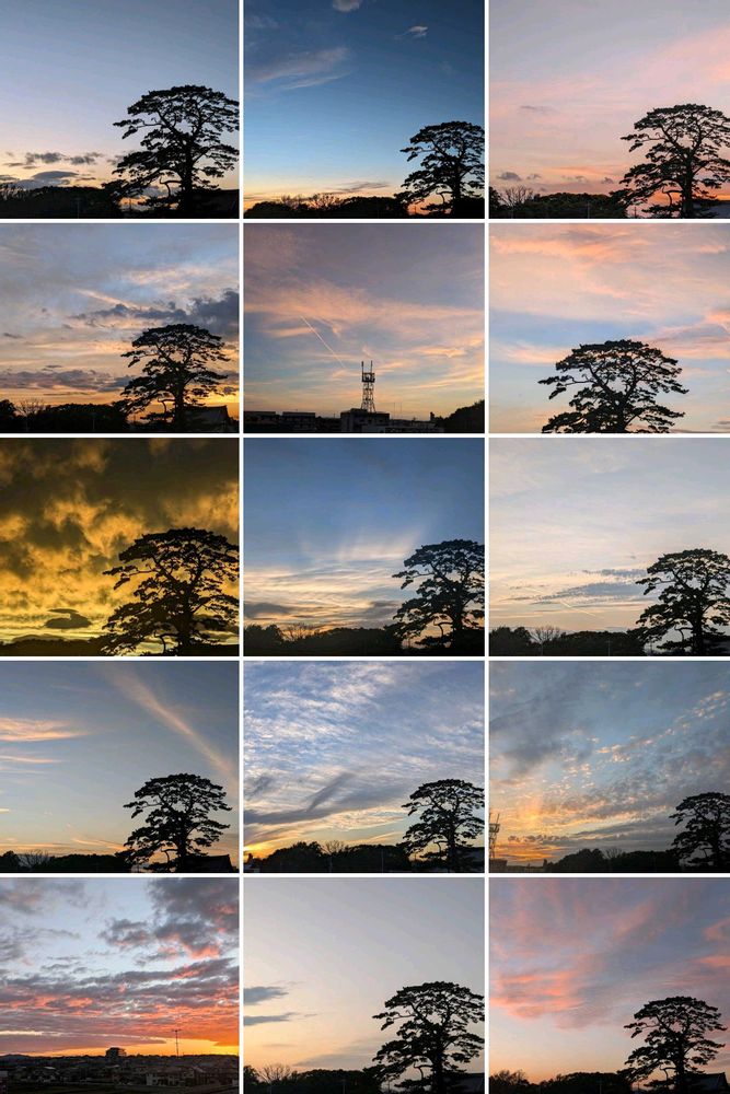 Googleフォトが「ゴールデンアワー・豊田市・2024年」と題してコラージュしてくれました🍀😊✨2024年1月〜12月🌇夕焼け🌲大木🌄朝焼け㊧㊦