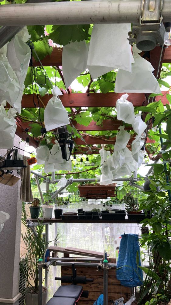 今年は豊作の予感、初めて袋がけをしてみました。綺麗な実が出来るかな。