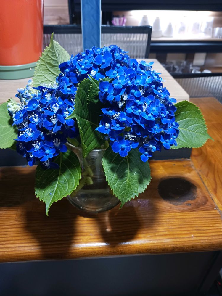 今日はお休みでした。時々仕事帰りに友人と待ち合わせをしていた喫茶店で午後から待ち合わせをしてコーヒーを飲みました。綺麗な紫陽花を飾っていたのでパチリさせてもらいました。
