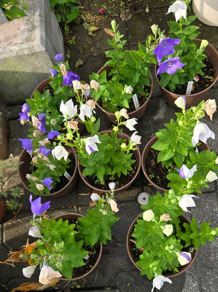昨年は⑧番の鉢しか絞り咲き桔梗が判別できませんでしたけど、今年は全て絞り咲きがありました。