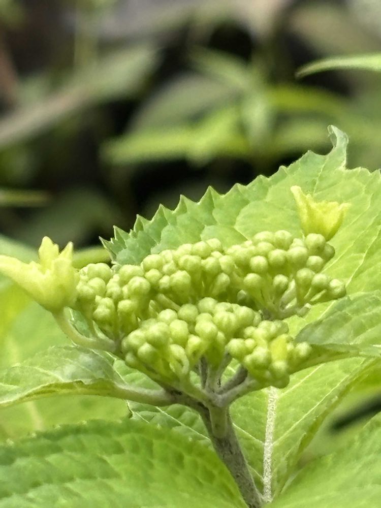 碧の瞳💙、まん丸の蕾で、その蕾が普通の紫陽花より大きいんですよ🤭