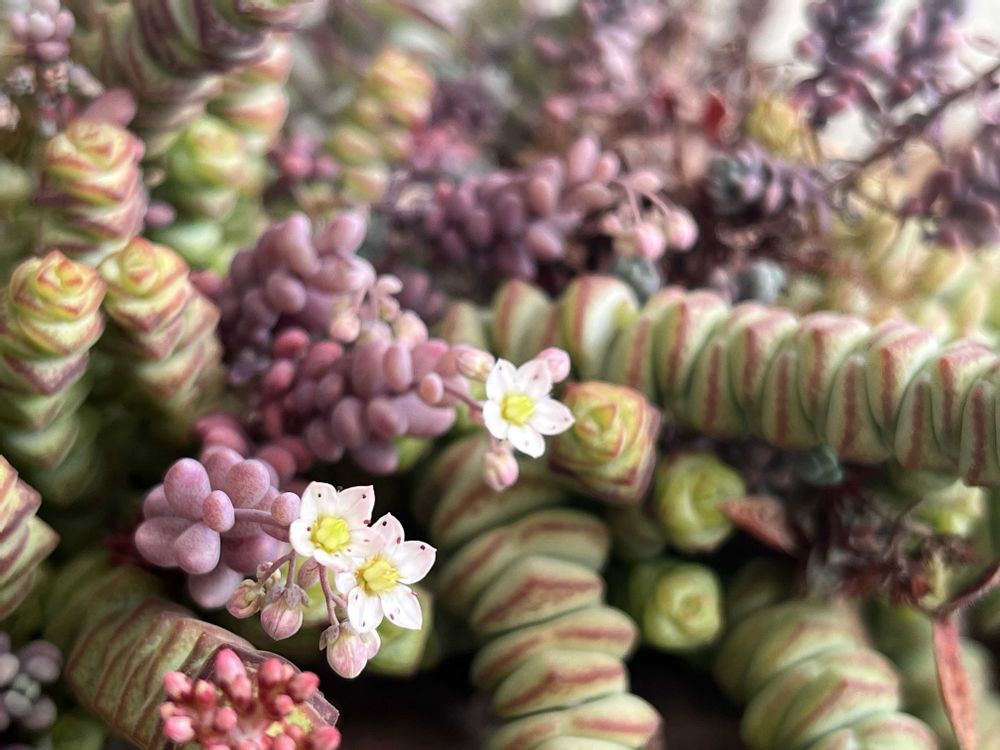 ありがとうございます。クラッスラ数珠星の赤い縁取り可愛いですよねー😍小ちゃなお花も健気で癒されます😊