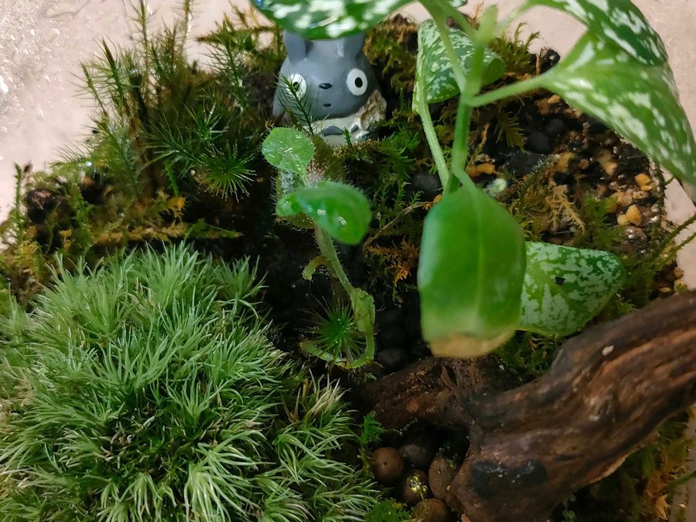 勝手に生えてきた植物と何とか保ってる苔…もう少し手入れしないと💦