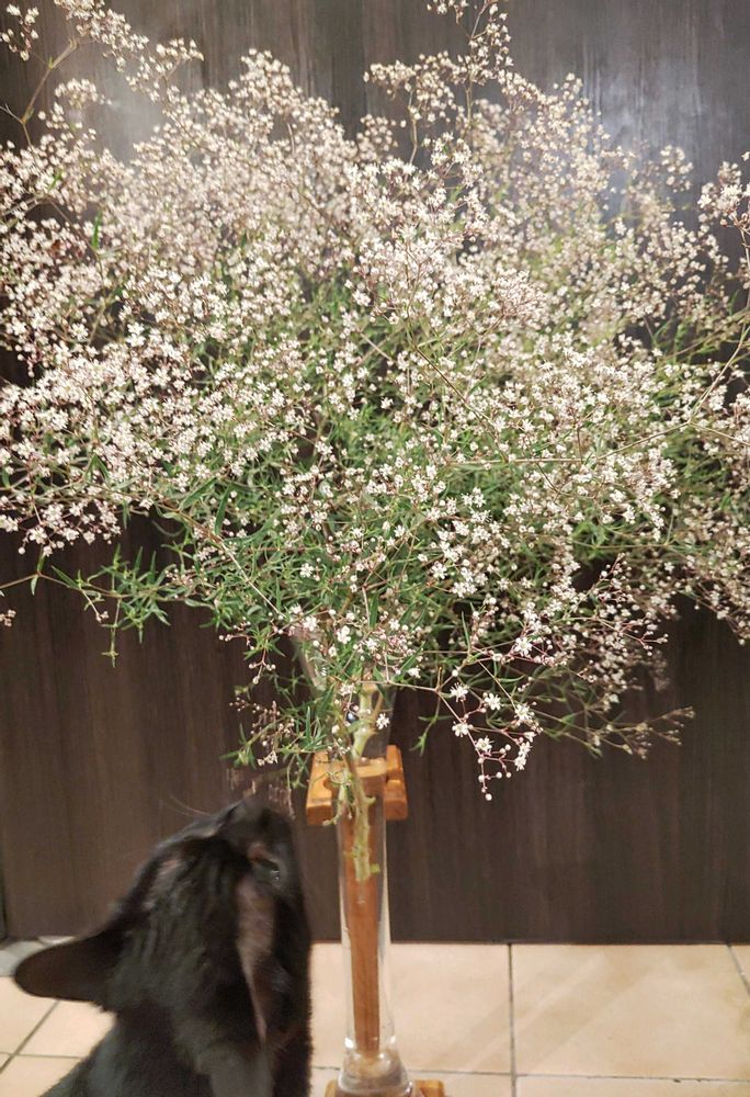 猫はかすみ草が好きで、他のお花は無視して かすみ草だけ引っ張り出して遊ぶんです。