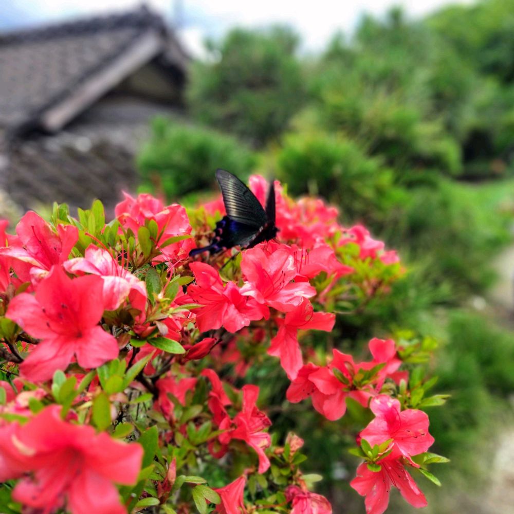 ③サツキ?に蝶々が蜜を吸いにやってきました