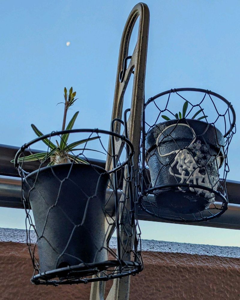 塊根さん達、狭いベランダで、なんとか少しでも多くの光を当ててあげたいという思いからの無理矢理感😅