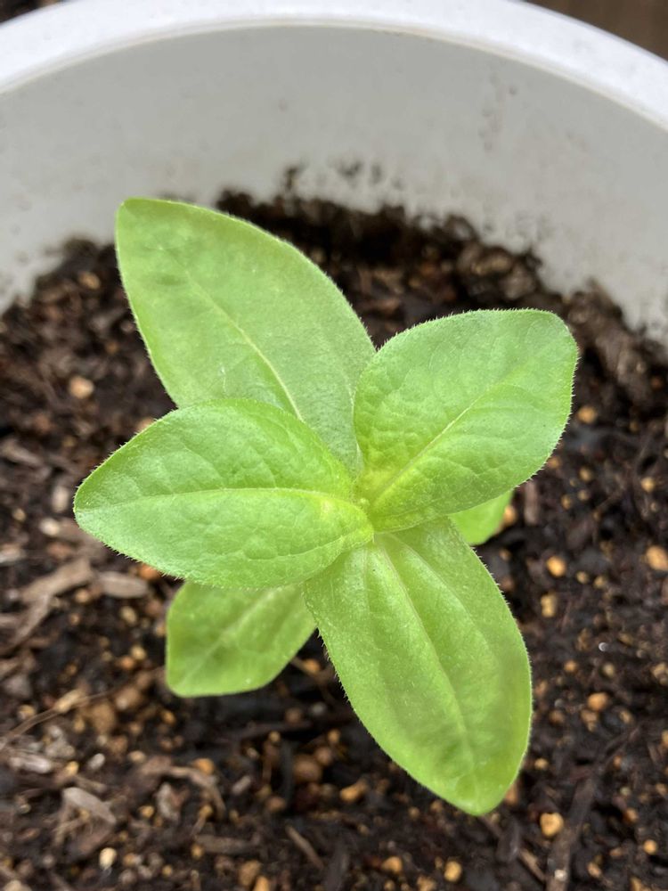 ⑤ いま、我が家のベランダで種まきから芽を出して育ちつつあるジニア🌱です!