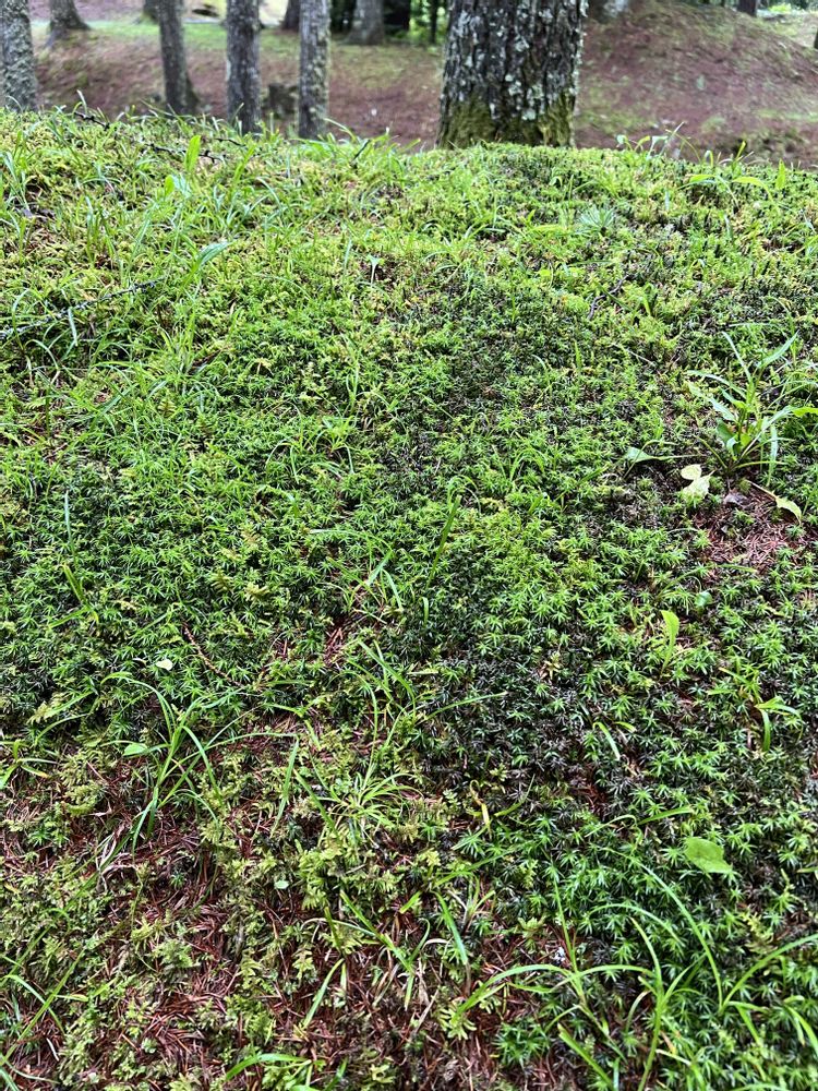 お泊まりは会社のコテージ ここへ行くと何時も雨 コケがフワフワに育っていて見ていて気持ちいいな
