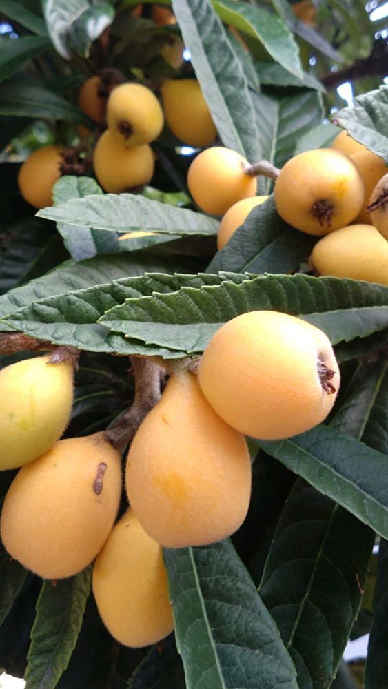 ビワ(琵琶)バラ科ビワ属の常緑高木、およびその果実。果実は食用。開花時期11月〜2月。原産地は中国南部。