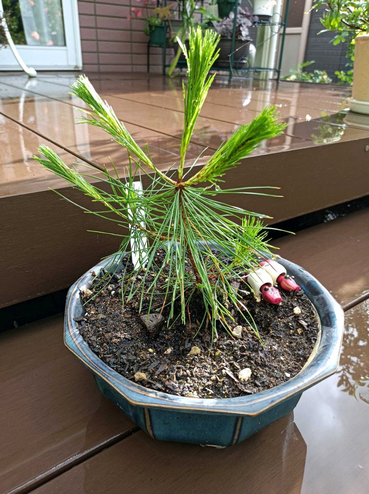 種からの松、順調に育ってますね。鉢が良い感じ😍うちもカット✂️して茶色くなってた葉先が自然治癒😆。緑になってスクスクです。