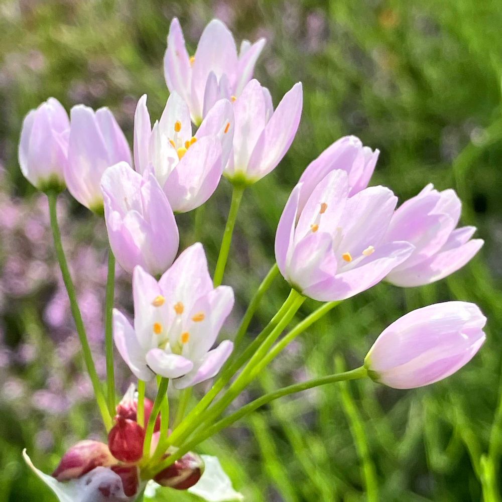 淡いピンクの星型の花が笠状に咲くアリウム・ロゼウム