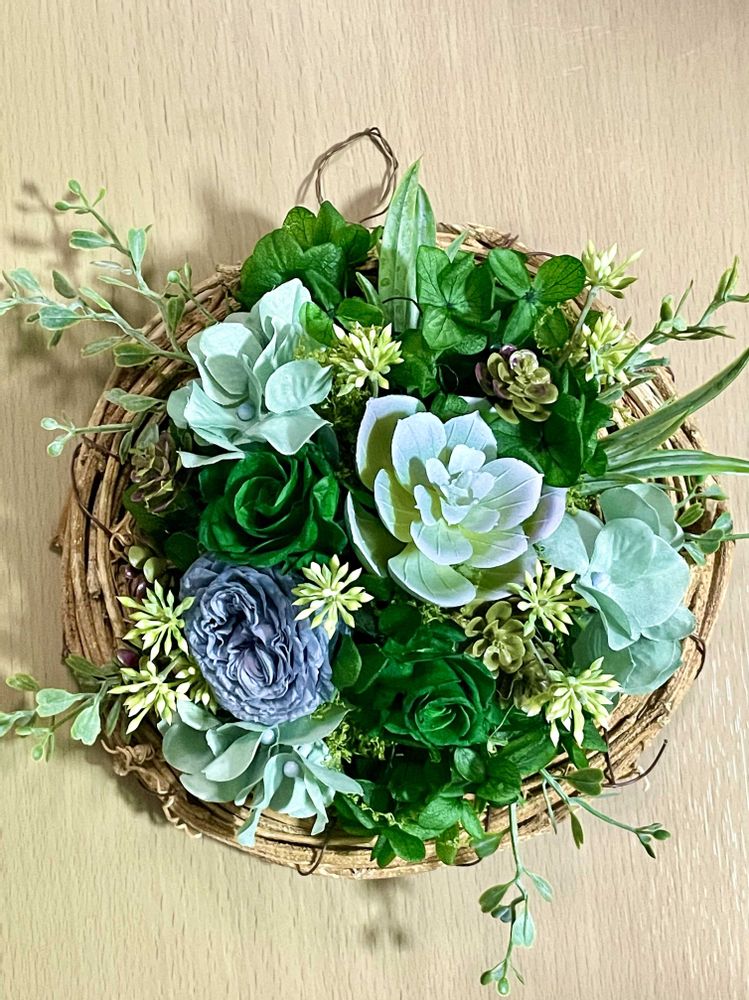 グリーン系の爽やかなアレンジも素敵💚一瞬、多肉の寄せ植えかと思ったよ😅