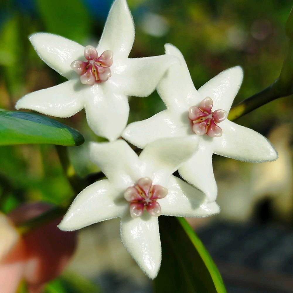 さらに調べたら、オドラータの交配種に Hoya cv.Iris Marieというのがあって、そちらはコロナが赤〜ピンク色らしい。