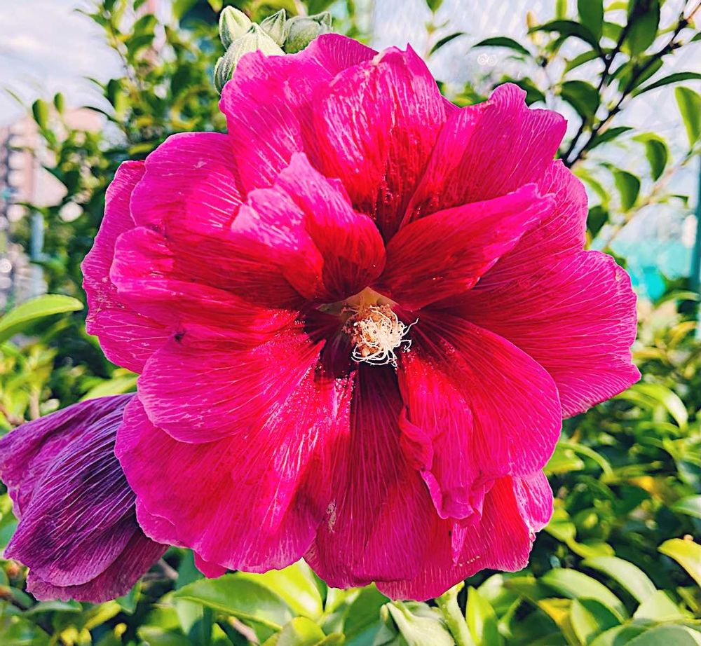色鮮やかな八重の立葵(タチアオイ)」でおはようございます🌺✨