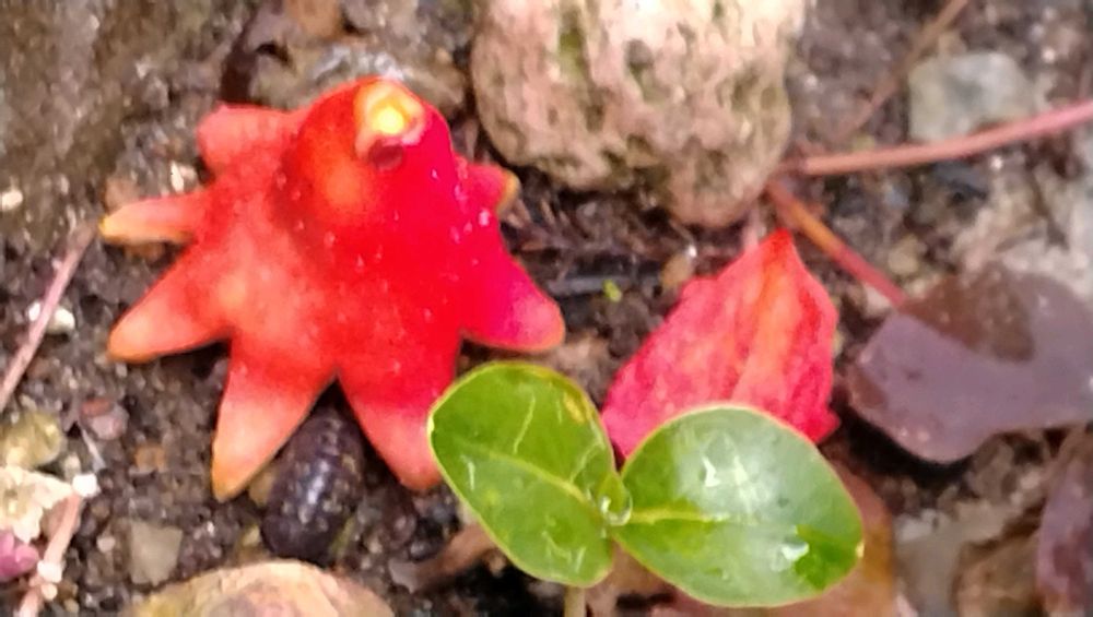 お隣の赤いザクロの落花