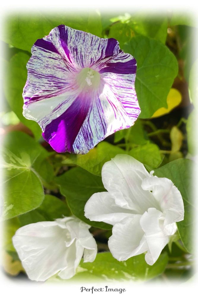花友さんから種を頂き毎年咲く《マメ絞り》と白い八重咲き《ジプシーブライダル》が一緒の鉢で仲良く咲いています❣️