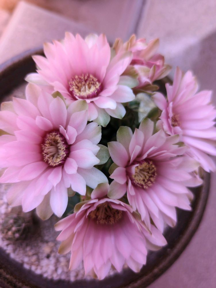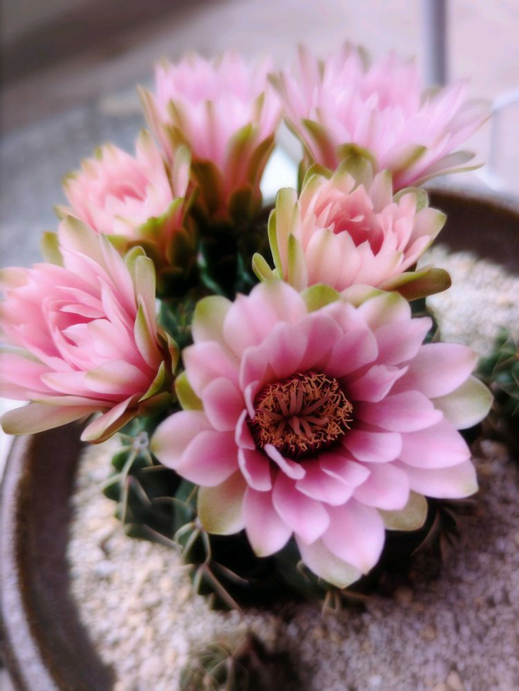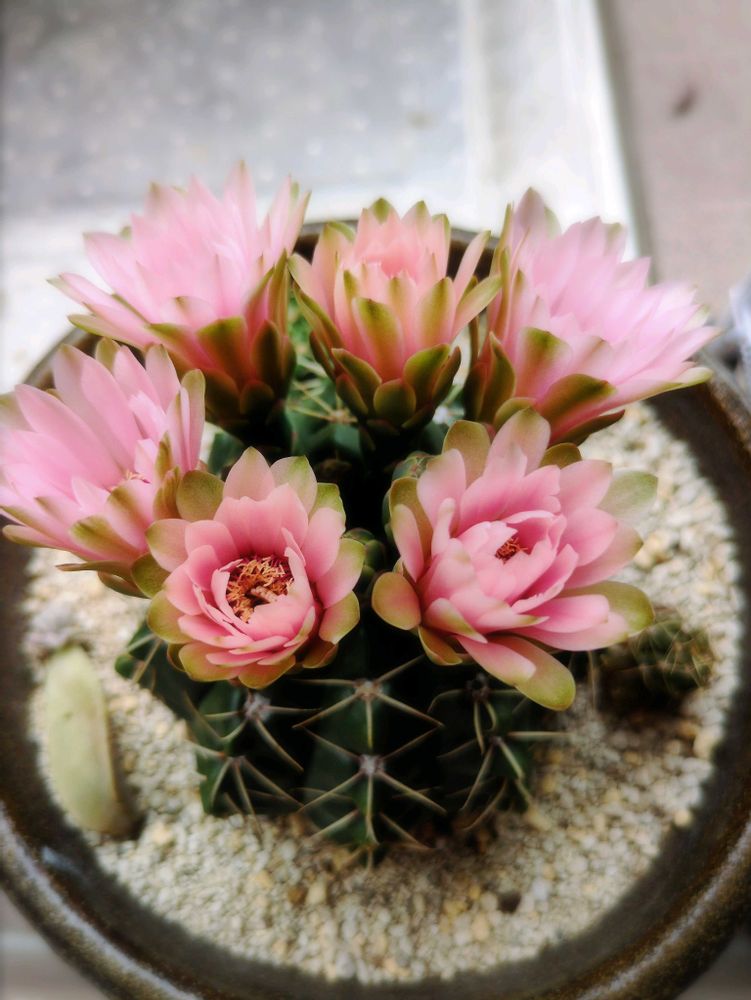お天気が良いのでやっと🌵がかくれる程6花咲いてくれました🩷(順番は逆です)