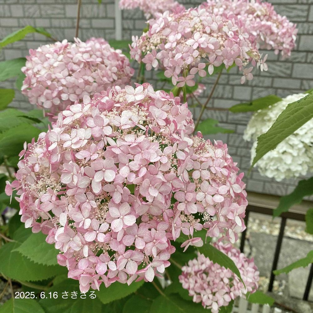 3年目になる旧#ピンクのアナベル2 です🐵初年度は2花のみ、2年目のお花は大きいのが2つとあとはちびっこ、3年目の今年は大きなお花がいっぱい🤩