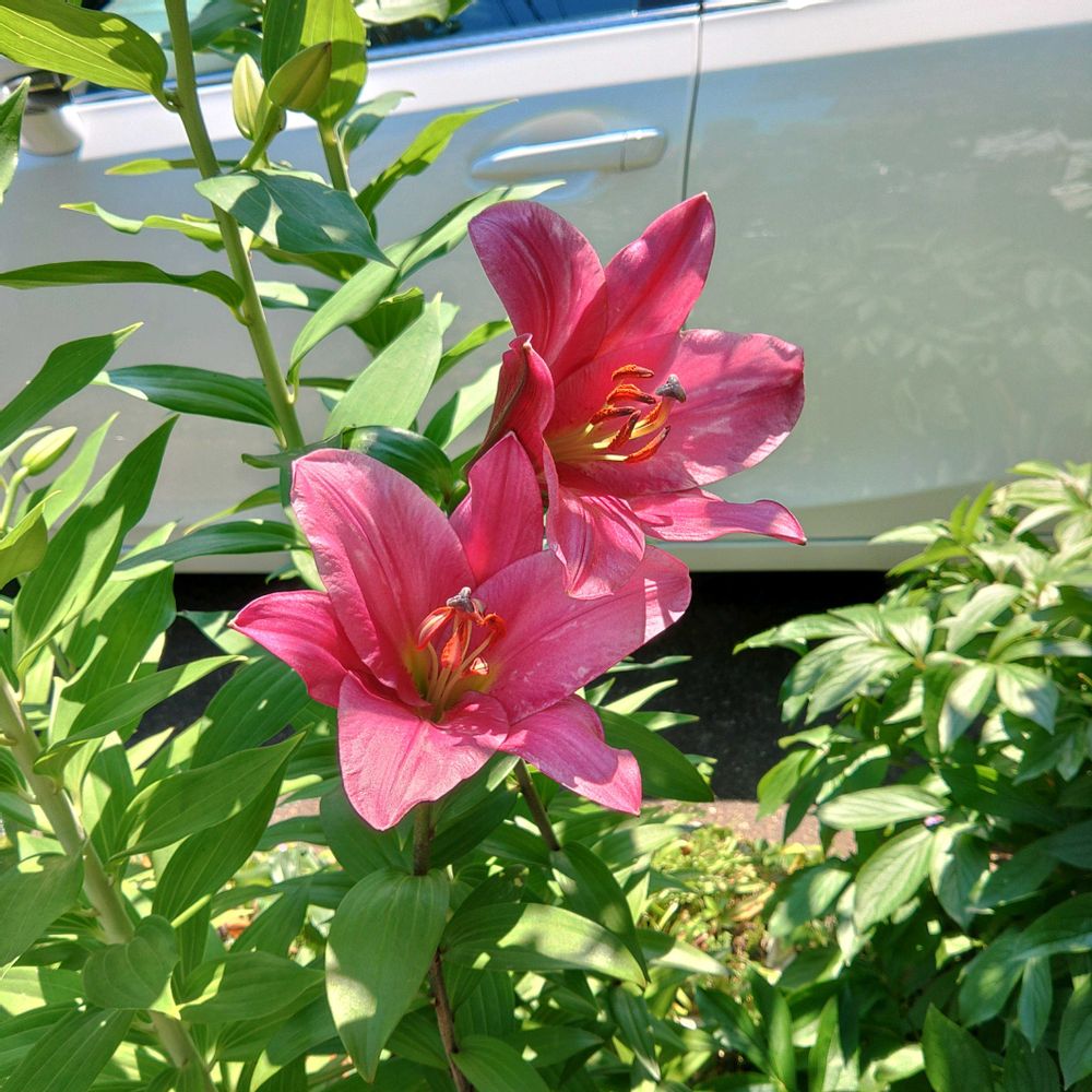 3、昨日の赤ユリの蕾も咲いてくれました💚❤️💚❤️💚