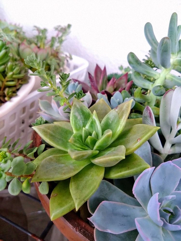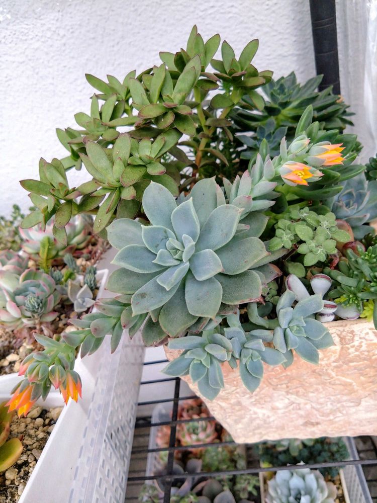 梅雨の合間で、昨日のうちに多肉達を棚から出して軽く水やり💧💧💧