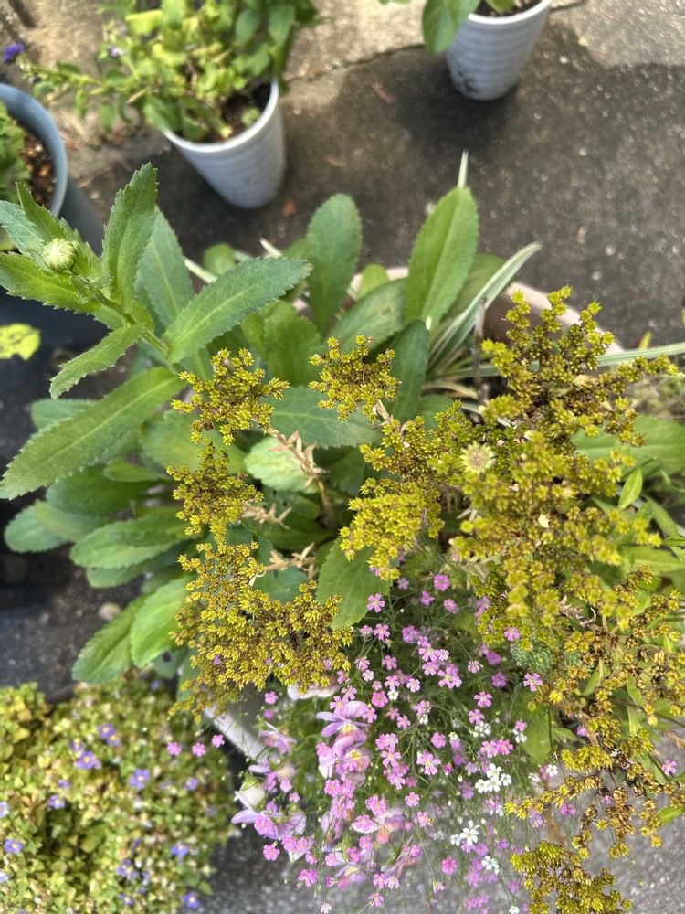 5️⃣何とかデージーとカスミソウとセダムのゴッタ植え😝