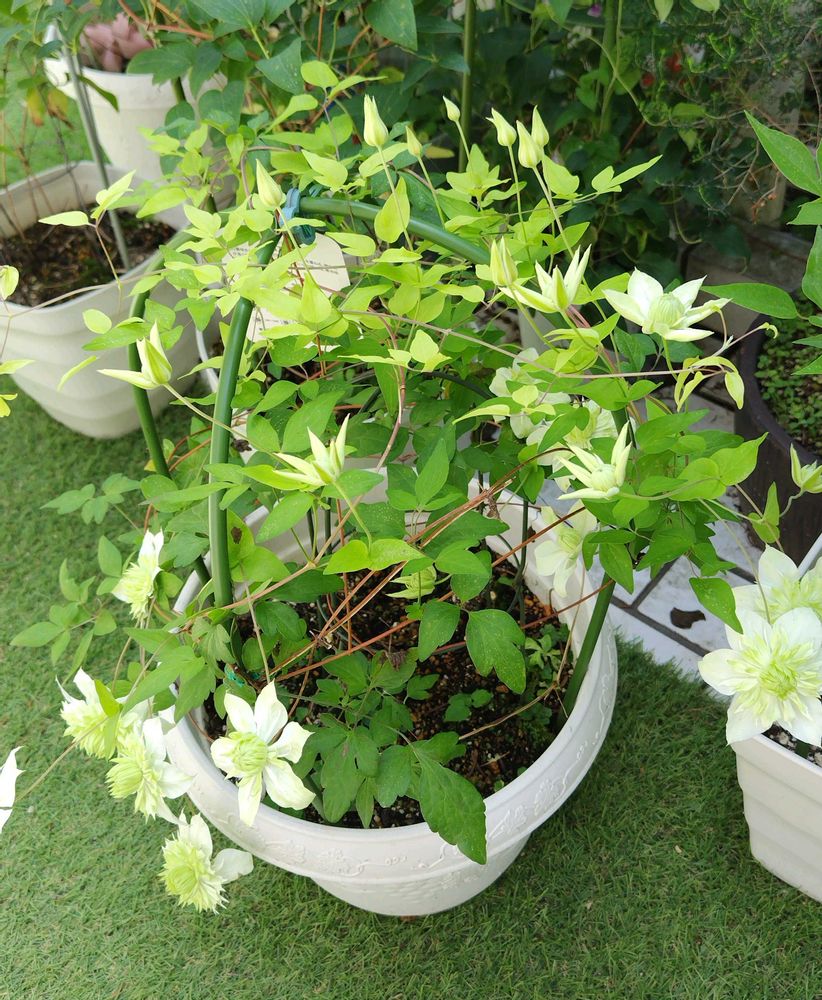 玄関アプローチ,クレマチス 白万重,鉢植えの投稿画像