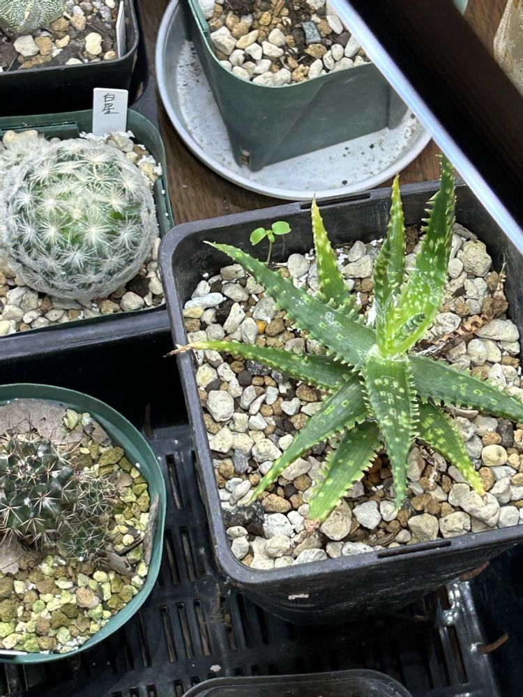 長雨のため多肉と原種シクラメンの一部を部屋に入れましたが花友さんから頂いたアロエが元気です🌿