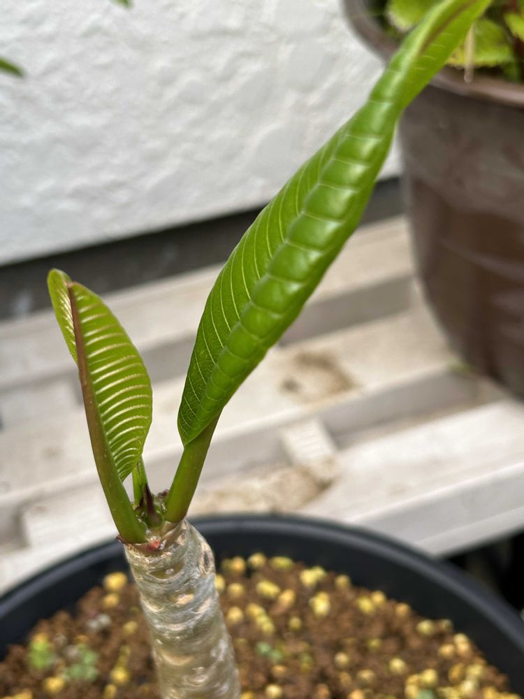 ⑤大雨で見ていない間にプルメリアの凛々しい葉が出ていました🌿