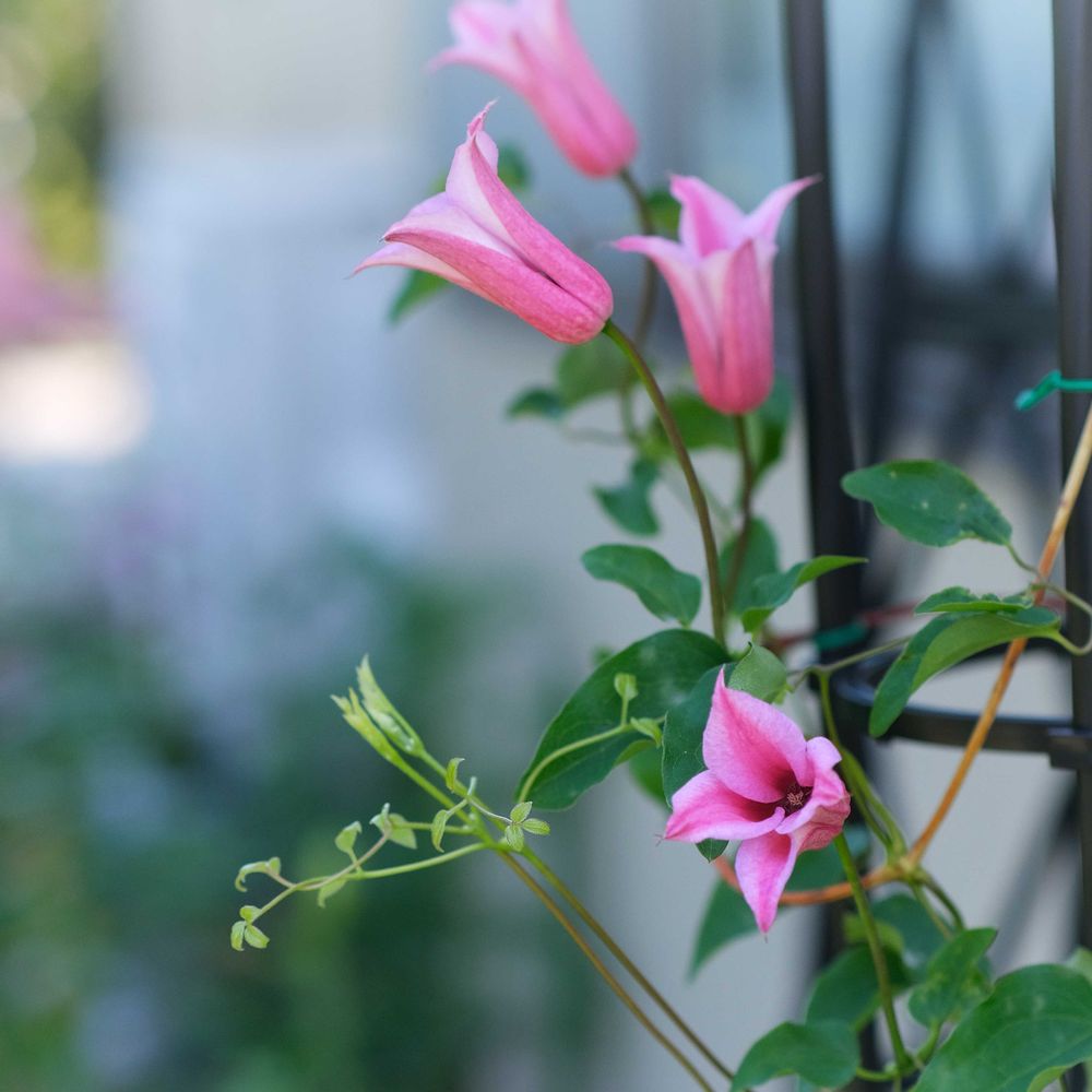 新枝咲き 開花は遅い方だと思います🪴昨年秋にお迎えしたばかりです😊うちのクレマチスは他は紫系ばかりなので、特別可愛いです😍