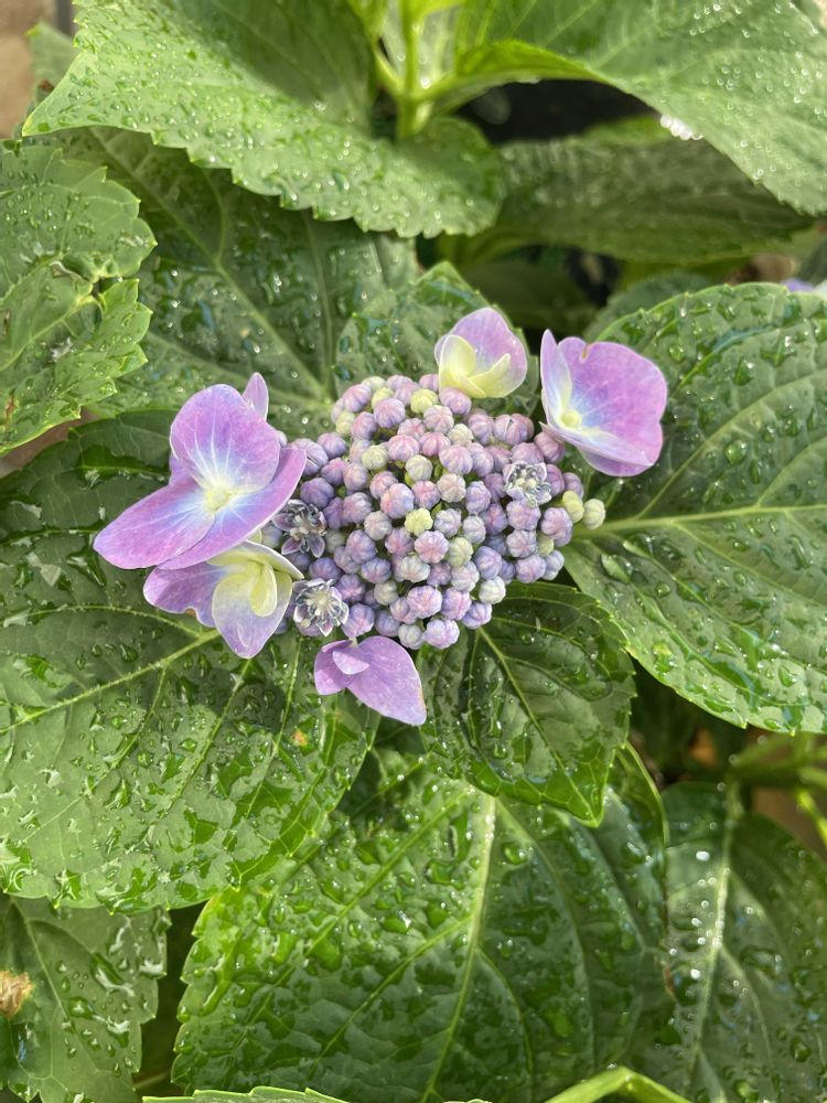 6/17 2つある紫陽花の鉢、赤の紫陽花鉢(6/9up)より10日以上遅れて、青い紫陽花鉢もようやくツブツブになってきました。