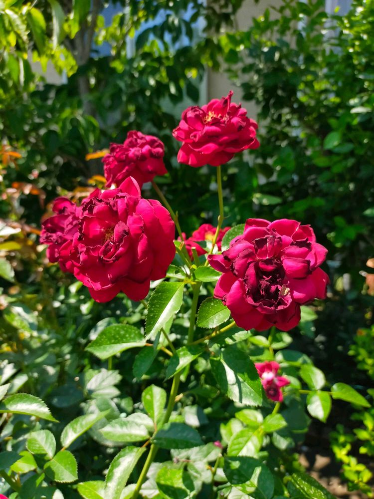 朝は綺麗に咲いていたのに午後にチリチリになった薔薇『ディープボルドー』