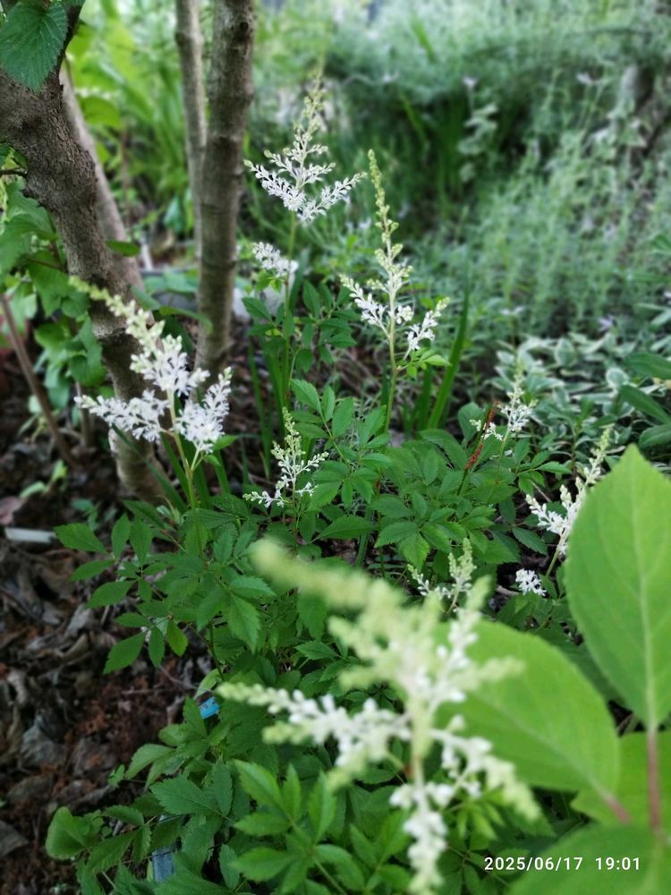 涼しげな大手毬とアスチルベ、この子達も暑くて参ってますね。
