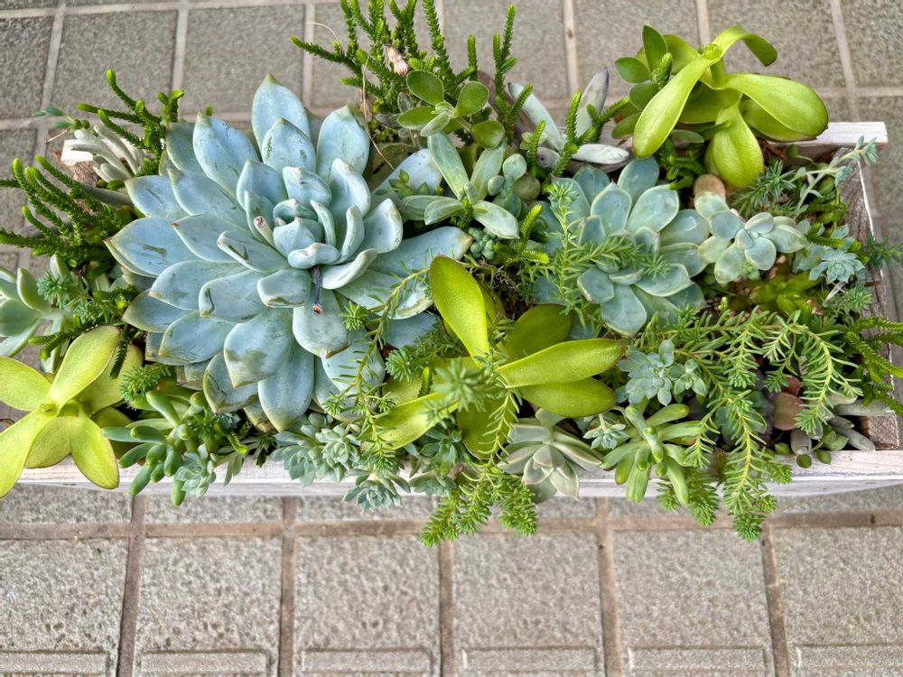 カラフルだった寄せ植えが緑色メインになり、干からびる恐れもつい水をたっぷりやって腐らせてしまう事があるのもこれからです。