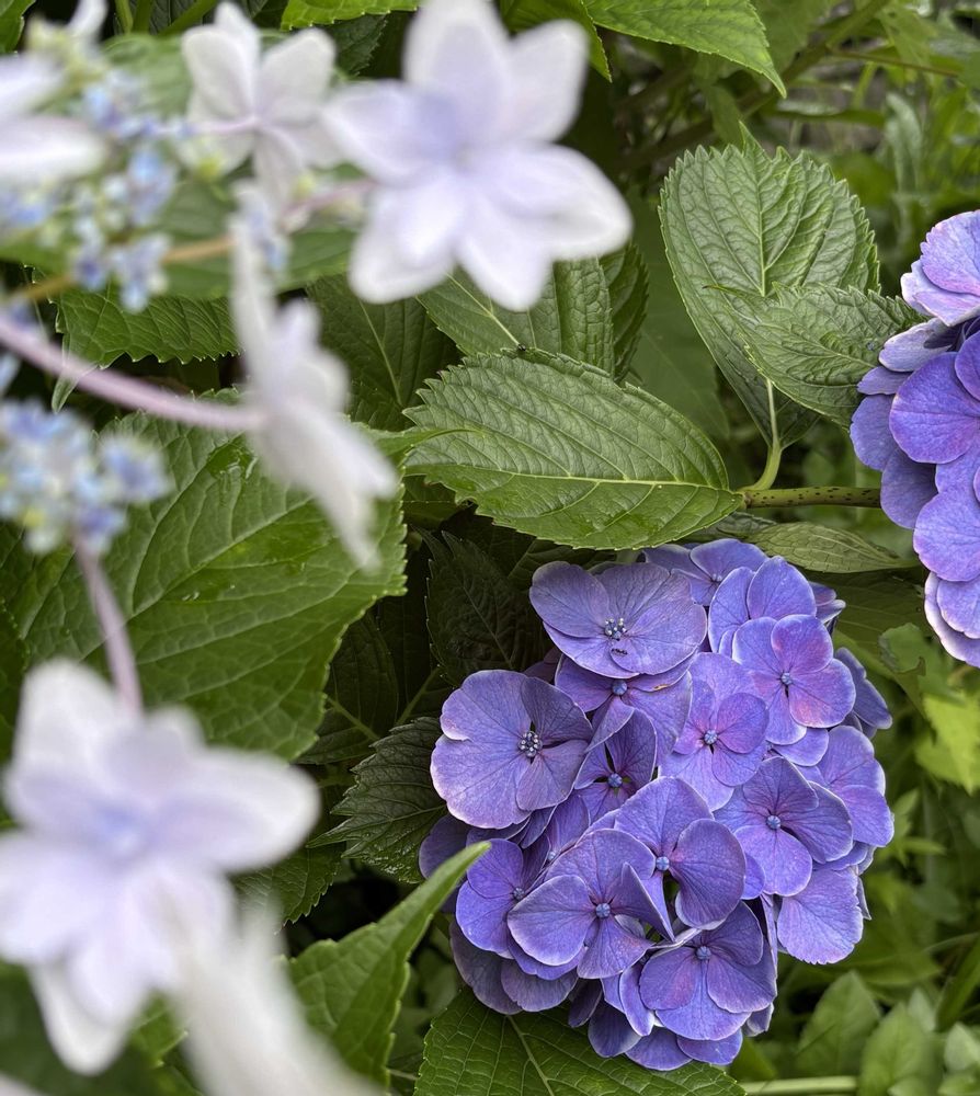 2️⃣青紫に少し縁取りっぽいものがステキなアジサイ。スミダノハナビの白が映えます