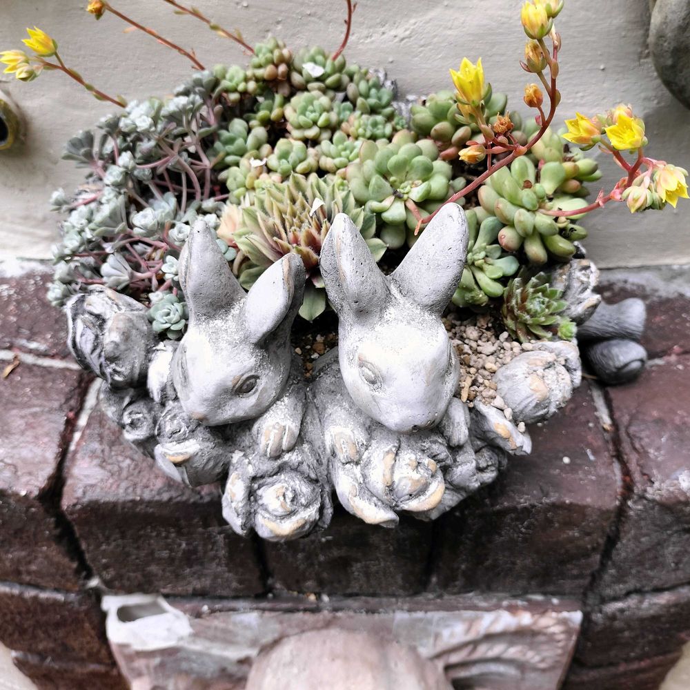 うさぎの器に多肉さんが寄せ植えされて可愛いですね