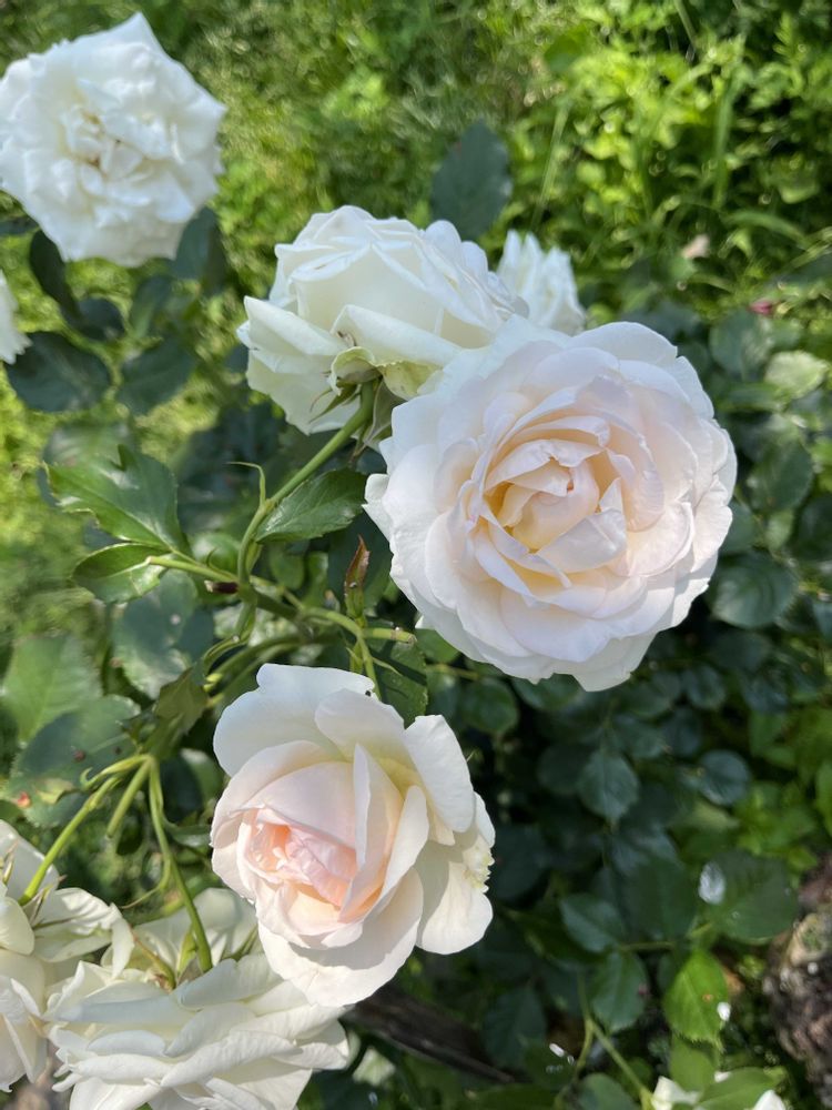 少しピンクが入った白いバラです。